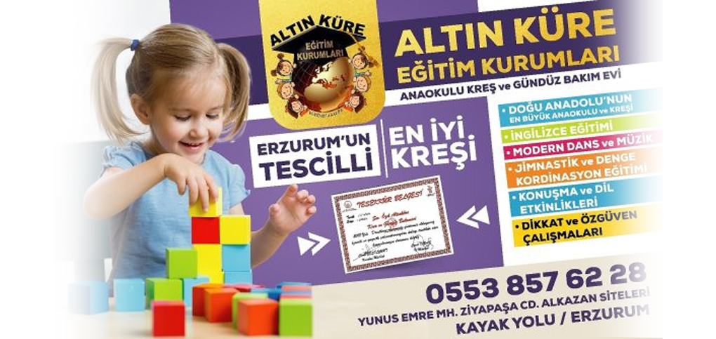 1.200 M2 Kapalı Alan ve 400 M2 bahçesi ile 10 yıldır Erzurum’un alanında en çok tavsiye ve tercih edilen 0-6 yaş arası hizmet verebilen Kreş ve Gündüz Bakımevidir.
